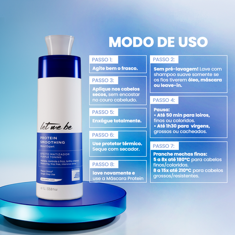 A Blond Protein Smoothing Passo Único® é um suavizador capilar especialmente desenvolvido para cabelos loiros, grisalhos e descoloridos, mas pode ser usado em todos os tipos de cabelo.