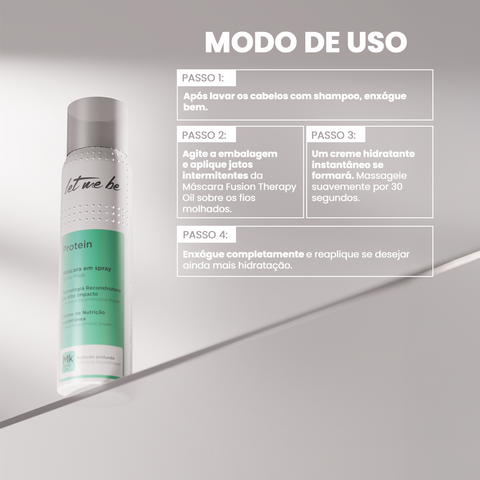 2 - Agite a embalagem e aplique jatos intermitentes da Máscara Fusion Therapy Oil sobre os fios molhados.