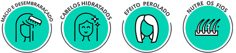 Deixa o cabelo macio, alinhado e com toque sedoso.